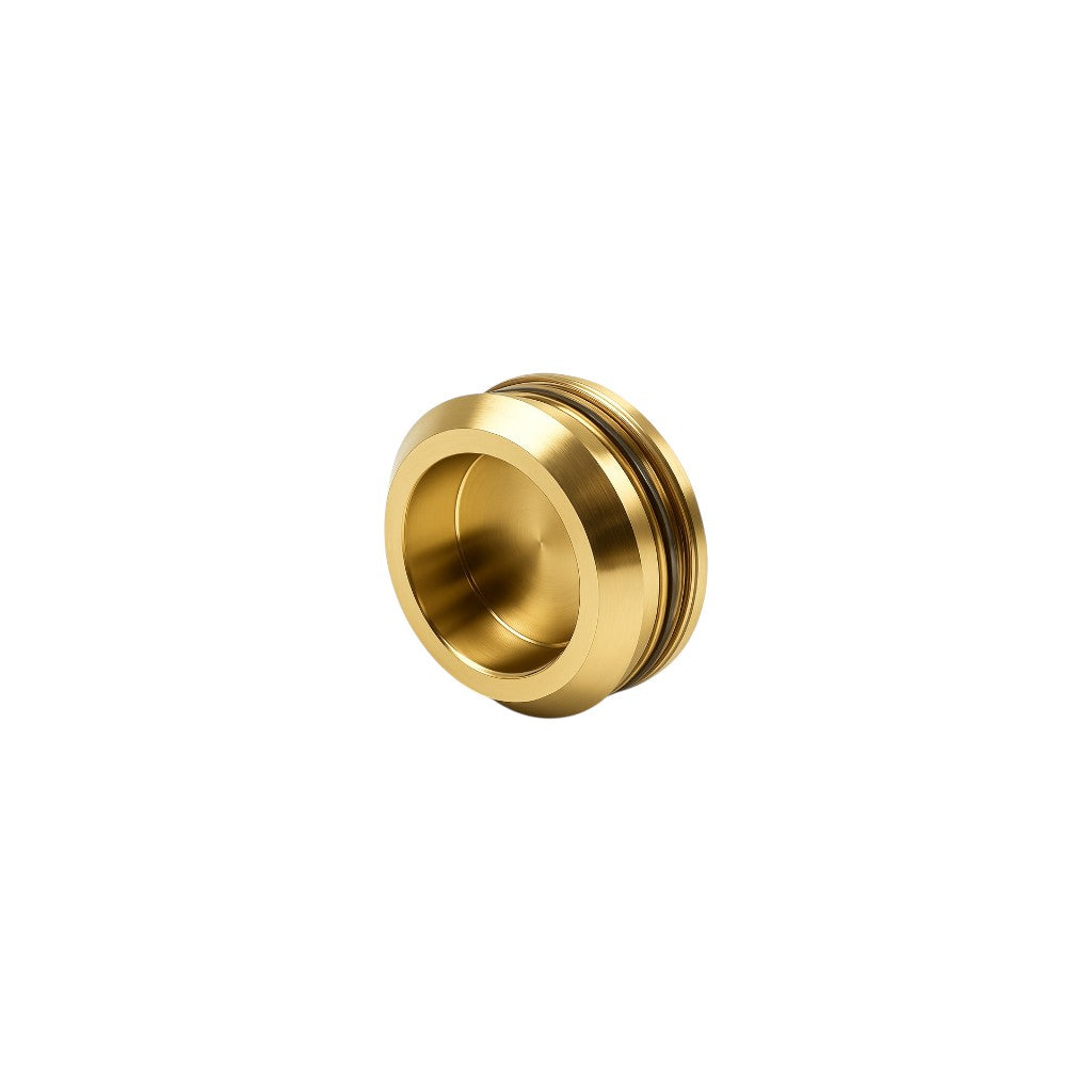 Low-profile sliding door handle (flush pull) for frameless glass doors.